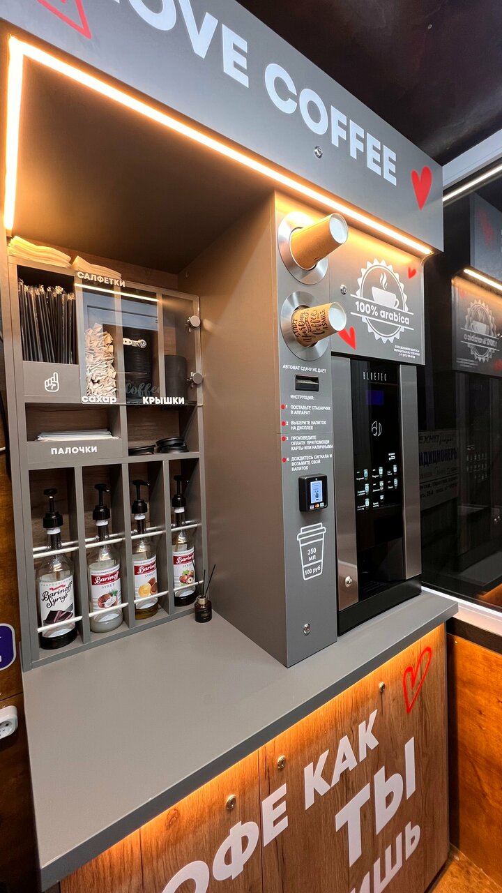 Кофе оказался неожиданно ароматным и вкусным. Автомат предлагает разные варианты. Удобство в том, что можно быстро получить чашечку кофе и продолжить путь. Цены очень приемлемые, а качество превосходит ожидания для автомата. Так же есть разные сиропы.
