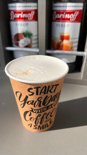 Я обожаю кофе,здесь оно очень вкусное,огонь.☕️🔥😍Тут очень уютно и чисто.Хорошая возможность по пути к морю выпить замечательное кофе.Хороший кофейный аппарат.